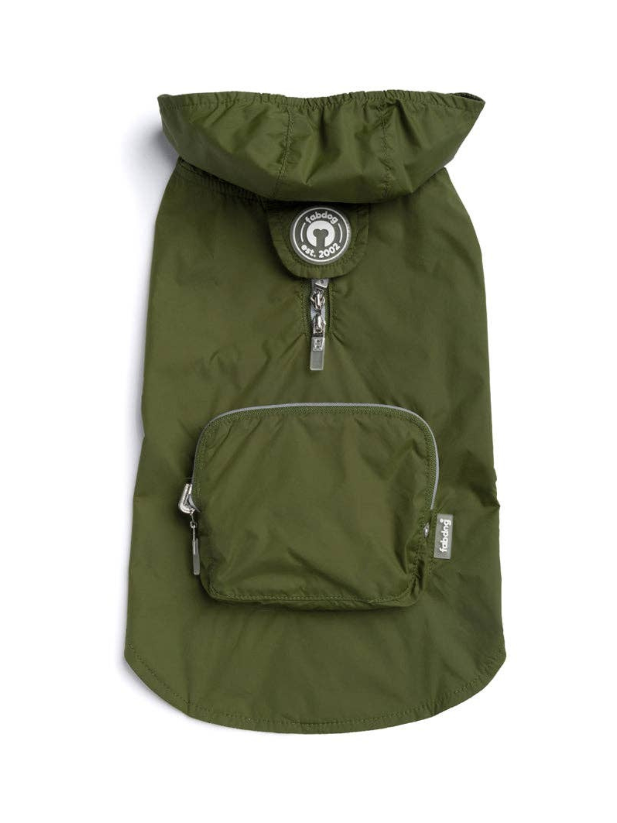 The Fabdog Raincoat keeps your pup dry, happy, and stylish no matter the weather. With an elastic hood for extra coverage, velcro chest and belly closures for comfort, and a double back zip for harness adjustability, it's as practical as it is fashionable. Bonus: it folds neatly into its own pouch when the sun comes back out.