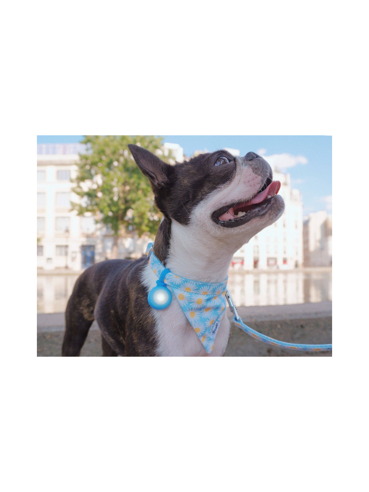 - Attachment: clips onto collar, harness, bandana, or leash