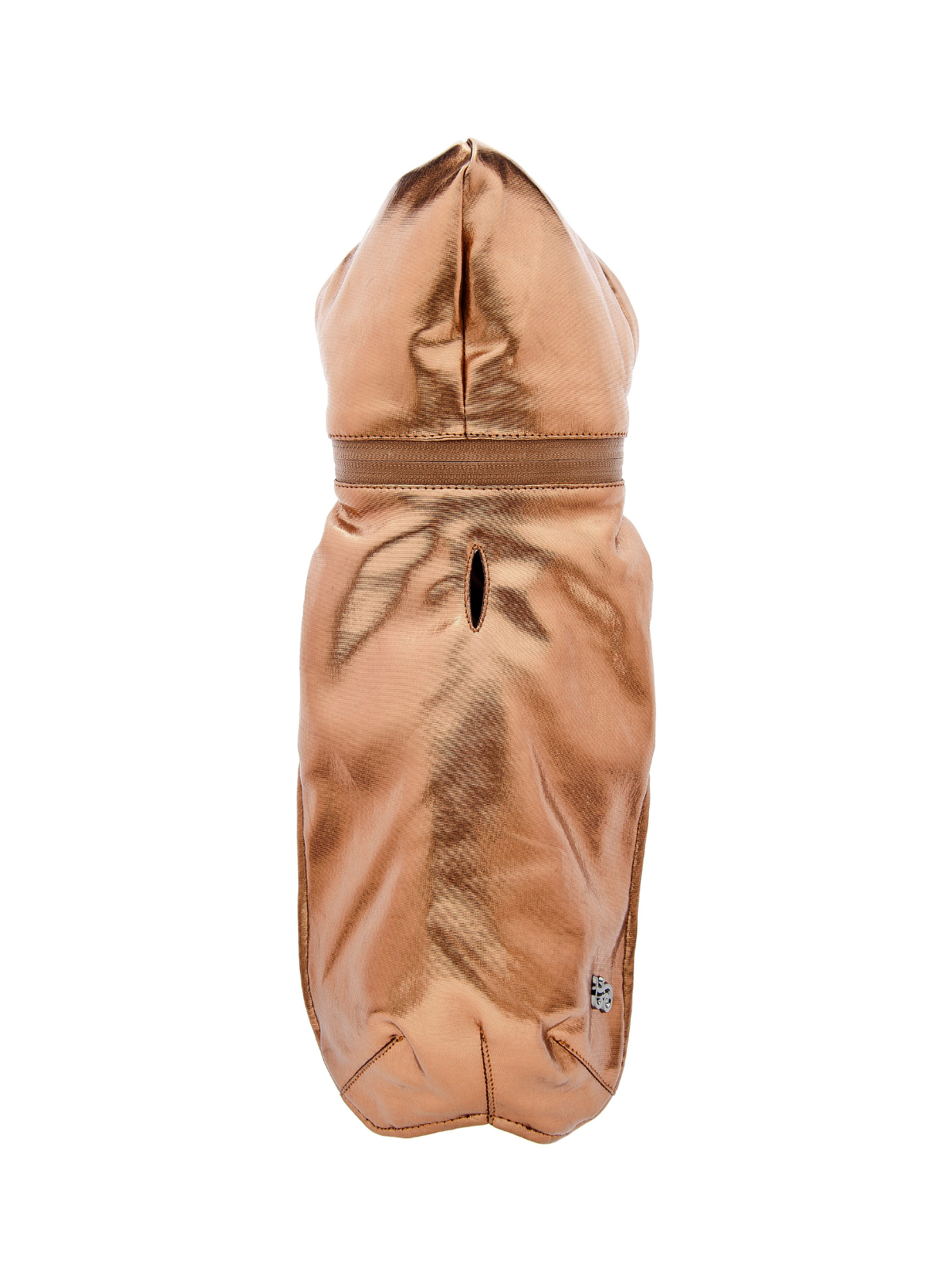 The Frozen Waterproof Raincoat features a detachable hood with waterproof zipper closure and adjustable girth with velcro. Padded chinlon inner lining for warmth and comfort. V-neck with velcro closure and eyelet for harness or collar. Elastic leg straps keep everything in place. Made from 100% synthetic leather exterior with chinlon lining. Built for wet weather without sacrificing style.