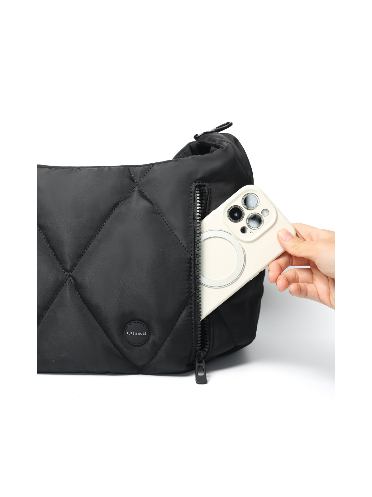 The Pups & Bubs Cloud Crossbody Pet Carrier is made from luxurious lightweight nylon fabric with a subtle sheen that brings understated elegance to both urban and casual wear. Smooth silky nylon padded with soft foam all around—oh-so-comfortable for both humans and pets. The best part? Innovative concealed water bottle zip pockets on both sides (fits up to 500ml each) keep the look clean and sleek, a unique feature you're unlikely to find in any other pet carrier.