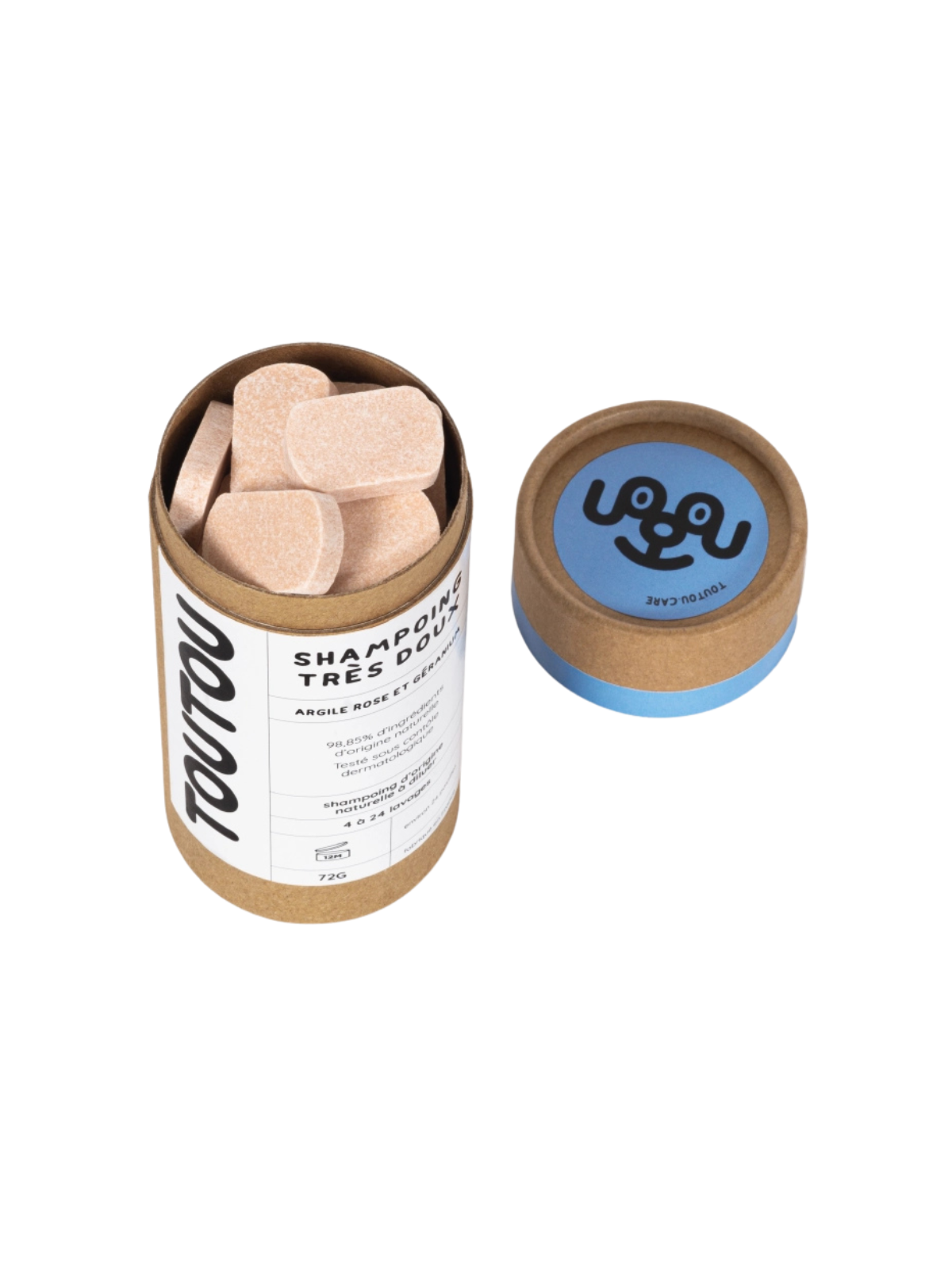 The Toutou Petcare Gentle Shampoo For Sensitive Skin is formulated with pink clay to gently purify skin and coat. Keratin and inulin (a prebiotic) nourish and coat hair for added shine, while geranium leaf essential oil delicately scents and naturally repels insects. Suitable for all coat and skin types, including puppies. Sulfate-free, biodegradable, and concentrated in tablet form for easy dosing and less waste.